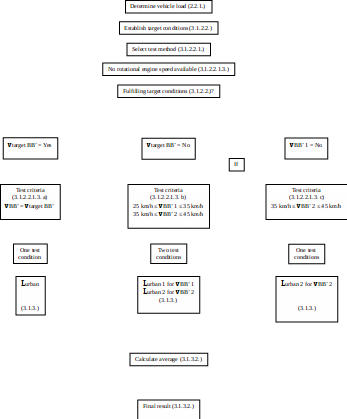 mtarget = 50 [kg/kW] x Pn [kW] Extra loading, mxload, to reach the target mass, mtarget, of the vehicle shall be placed above the rear axle(s). The sum of the extra loading and the rear axle load in an unladen condition, mra load unladen, is limited to 75 per cent of the technically permissible maximum laden mass allowed for the rear axle, mac ra max. The target mass shall be achieved with a tolerance of ±5 per cent. If the centre of gravity of the extra loading cannot be aligned with the centre of the rear axle, the test mass, mt, of the vehicle shall not exceed the sum of the front axle in an unladen condition, mfa load unladen, and the rear axle load in an unladen condition, mra load unladen plus the extra loading, mxload, and the mass of the driver md. The test mass for vehicles with more than two axles shall be the same as for a two-axle vehicle. If the vehicle mass of a vehicle with more than two axles in an unladen condition, munladen, is greater than the test mass for the two-axle vehicle, then this vehicle shall be tested without extra loading. If the vehicle mass of a vehicle with two axles, munladen, is greater than the target mass, then this vehicle shall be tested without extra loading. |
