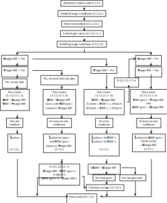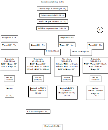 If the tests are carried with an incomplete vehicle not having a bodywork, mtarget = 50 [kg/kW] x Pn [kW] is calculated in compliance with conditions above (see N2, N3 category), or mt = mchassisM2M3 + mxloadM2M3 = mro The mass in running order shall be achieved with a tolerance of ±10%. |